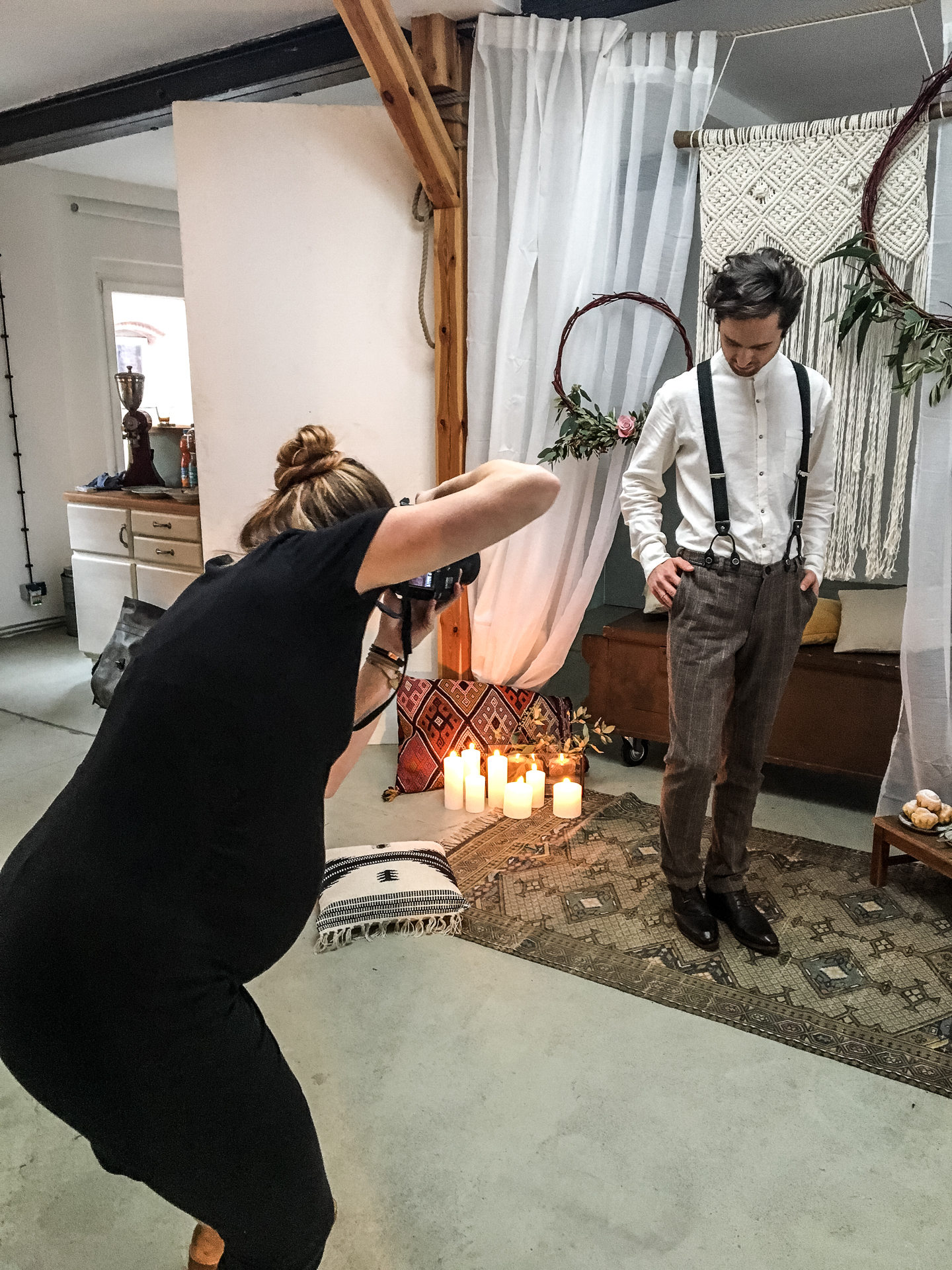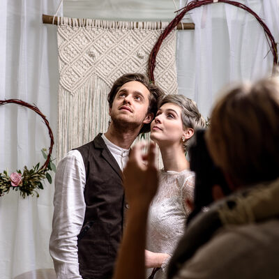 Winter. Es ist kalt, nass und ungemütlich draußen, also warum nicht einfach das hübsche Hochzeitsshooting im Studio stattfinden lassen? Das hat sich Fotografin Leonore Rost für ihre Hochzeitspräsenz zweinander auch gedacht und prompt ein Setting in den Osthof gezaubert. Kreative Unterstützung hatte sie dabei von Jacqueline Schönberg für die Setgestaltung und von Lea Kretschmar fürs Haare & Make Up Styling. In Szene gesetzt wurden Kleider von Schleifenfänger, Herrenausstattung von Rosentreter und Baer, Schmuck von Atelier Wolkengold, sowie Blumenkränze von Cacaoblüte und Makrameebehang von Daniela Fahrens. Vor der Kamera standen Christian Kress und Jessica Kalbitz. Da wird einem doch wieder warm ums Herz!